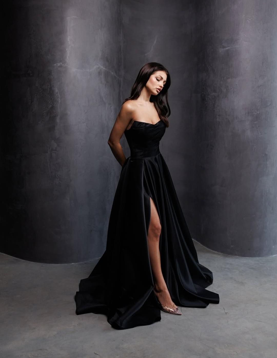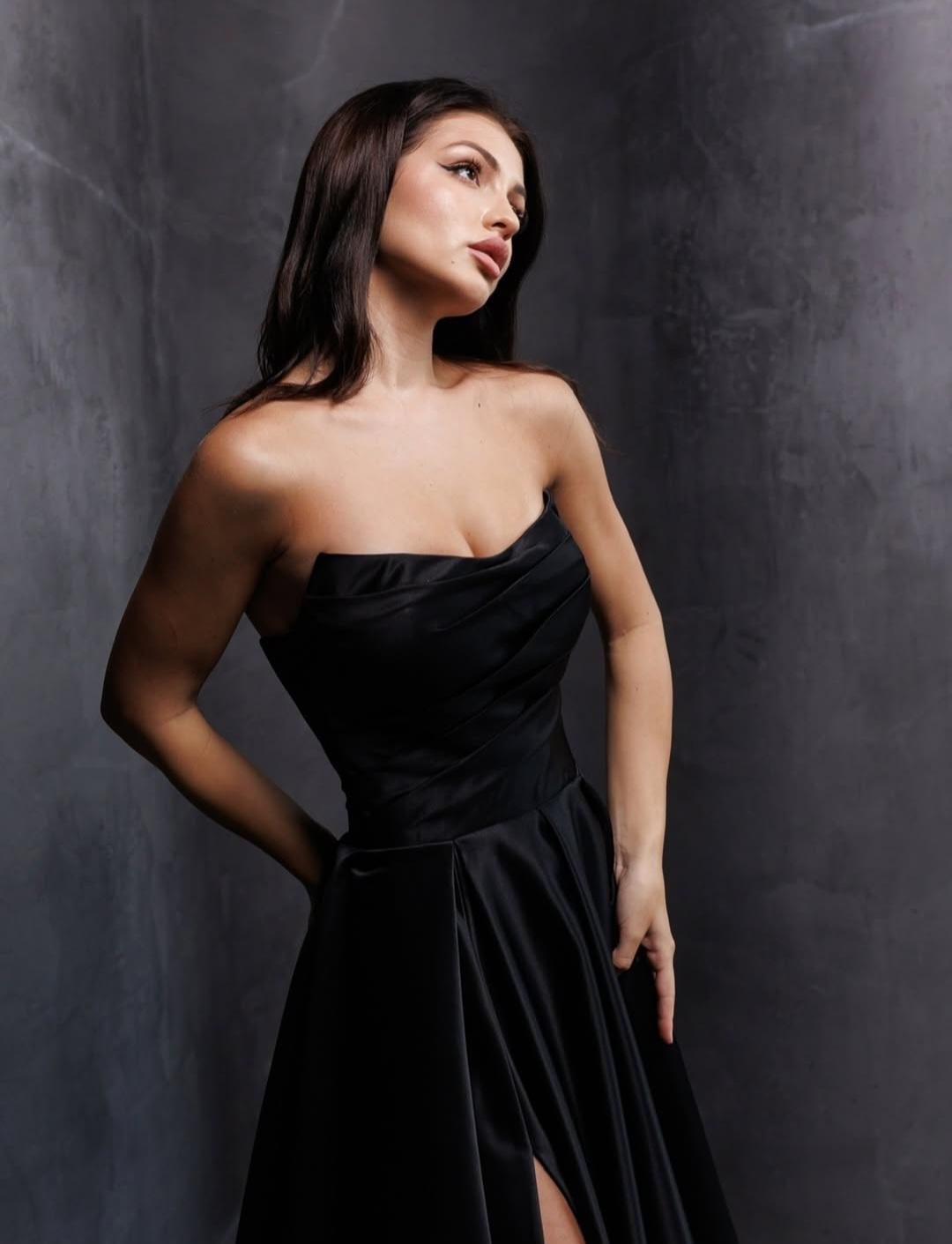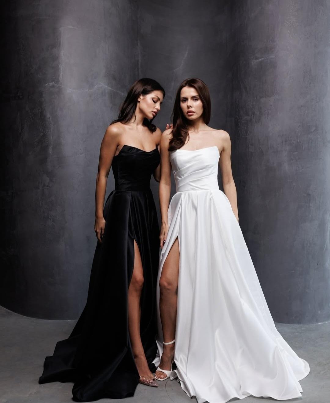 Трендова вечірня сукня з королівського атласу, що ідеально підійде на будя яку твою подію. Корсет має бездоганну посадку. Сукня може бути з високим розрізом або без нього.